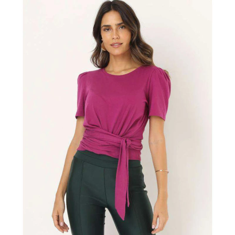 BLUSA MALHA ALGODÃO COM AMARRAÇÃO SEIKI 331037Composição:100%ALGODÃO