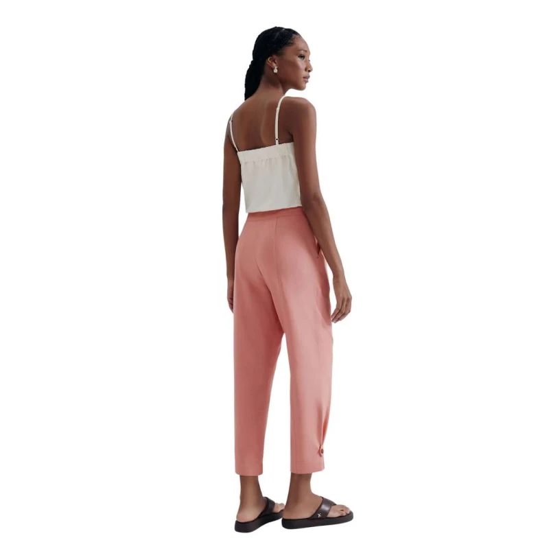 Conheça nossa calça reta feminina em alfaiataria de linho, que une elegância e conforto. Com ajuste na barra por botão de pressão, ela permite um estilo versátil, podendo ser usada em shape mais cenoura. Ideal para o trabalho ou ocasiões especiais, traz um toque sofisticado ao seu visual.