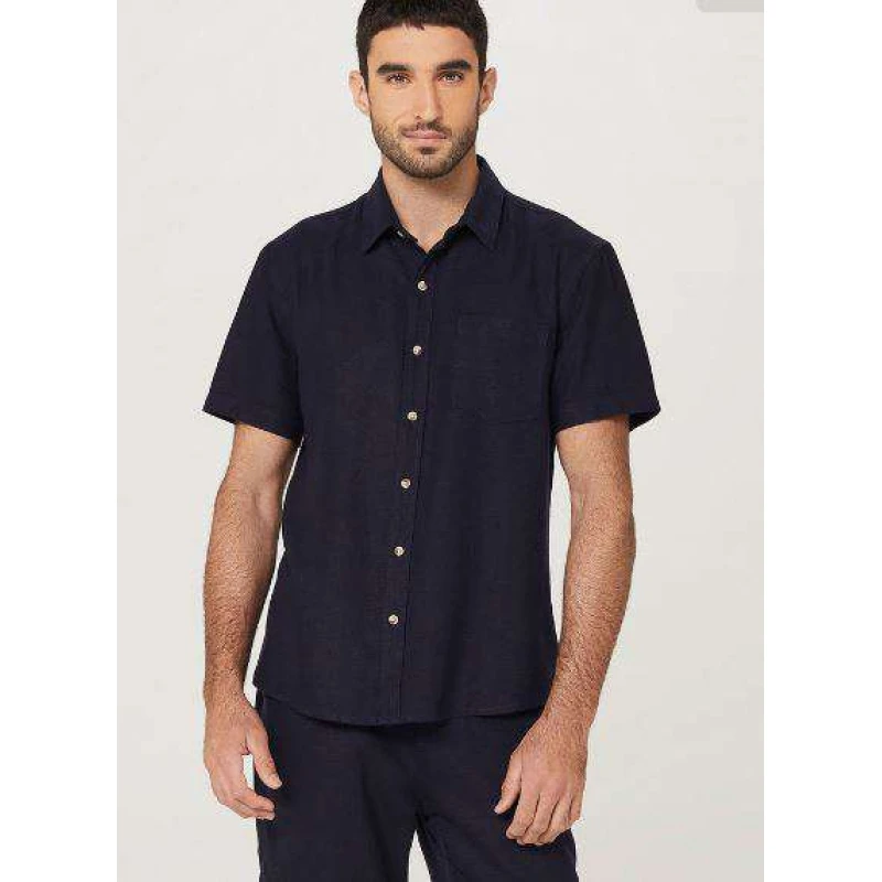 Camisa básica masculina Hering, em tecido leve de linho com viscose. Cheia de estilo e conforto, as camisas de manga curta invadiram o guarda-roupas masculino e mostraram que vieram para ficar. Possui caimento soltinho, mangas curtas, abertura frontal por botões, gola tradicional e dois bolsos funcionais na parte frontal. O look masculino ficará ainda mais incrível com este modelo, aposte!
