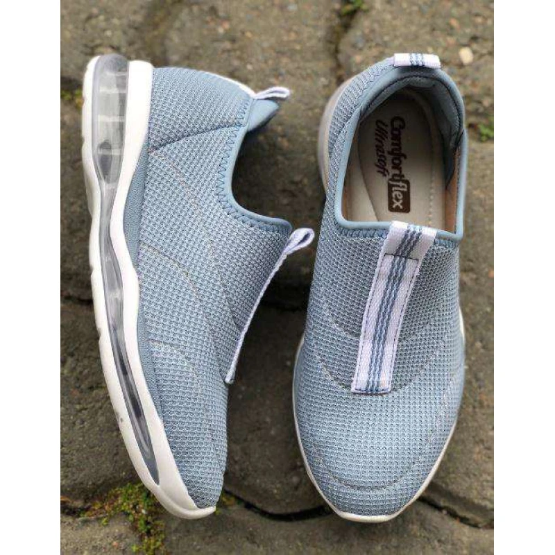 Tênis feminino casual, confeccionado em tecido elástico para facilitar o calçar.
