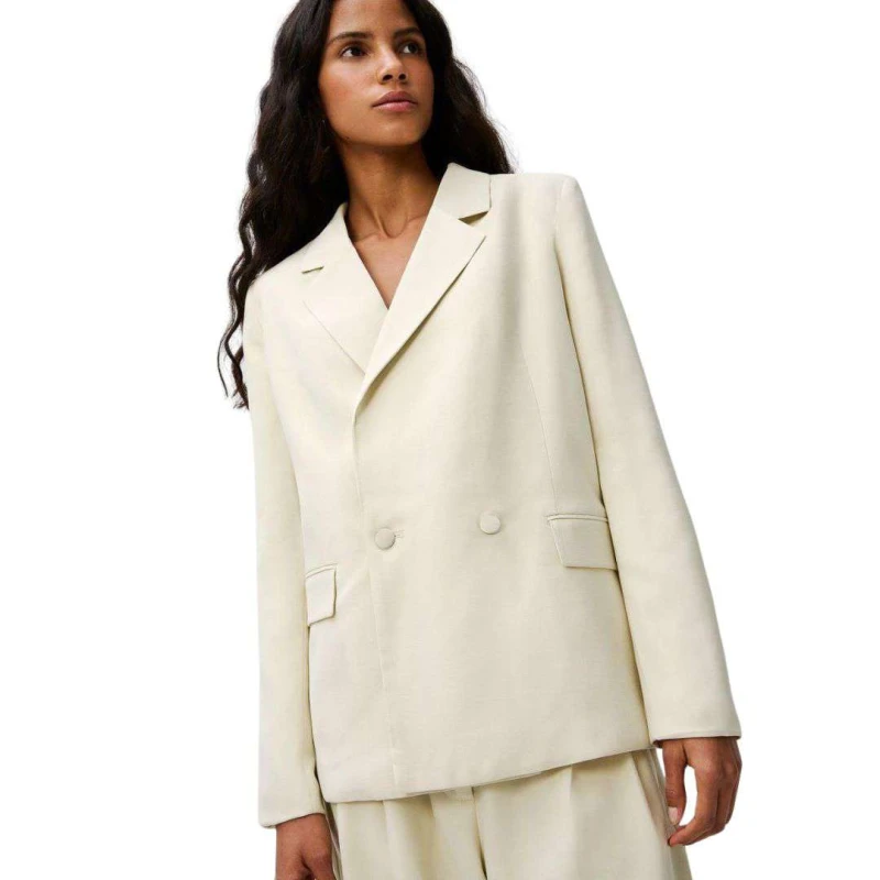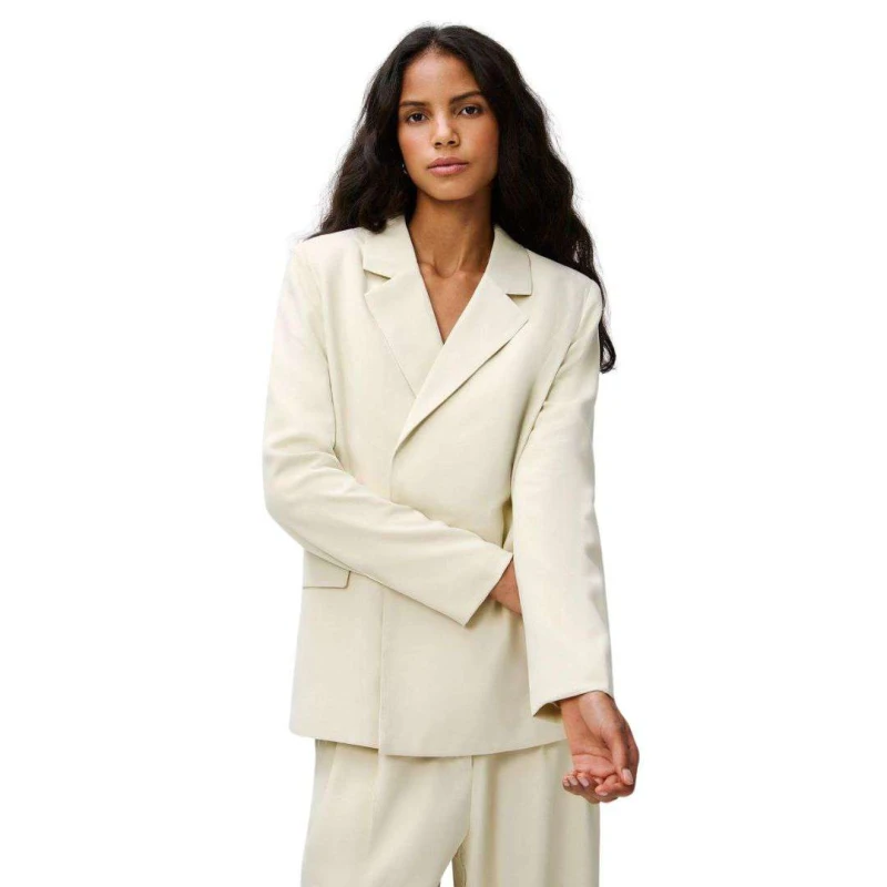 Blazer feminino em tecido plano com frente transpassada. Possui gola V, lapela de bolso e abotoamento frontal. Sofisticado e elegante, ideal para compor looks formais e modernos.