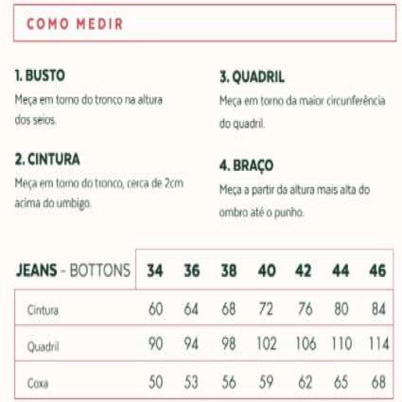 | Tipo De Calça | Jeans |