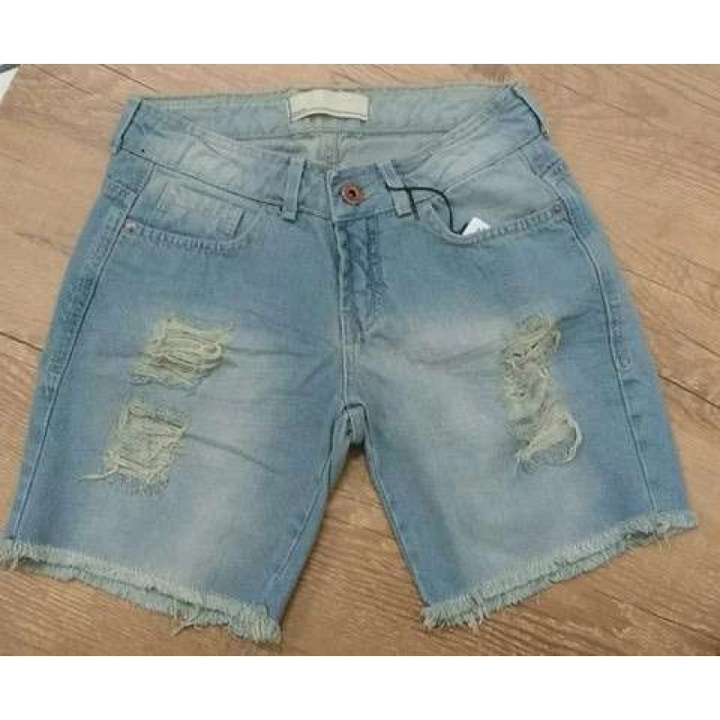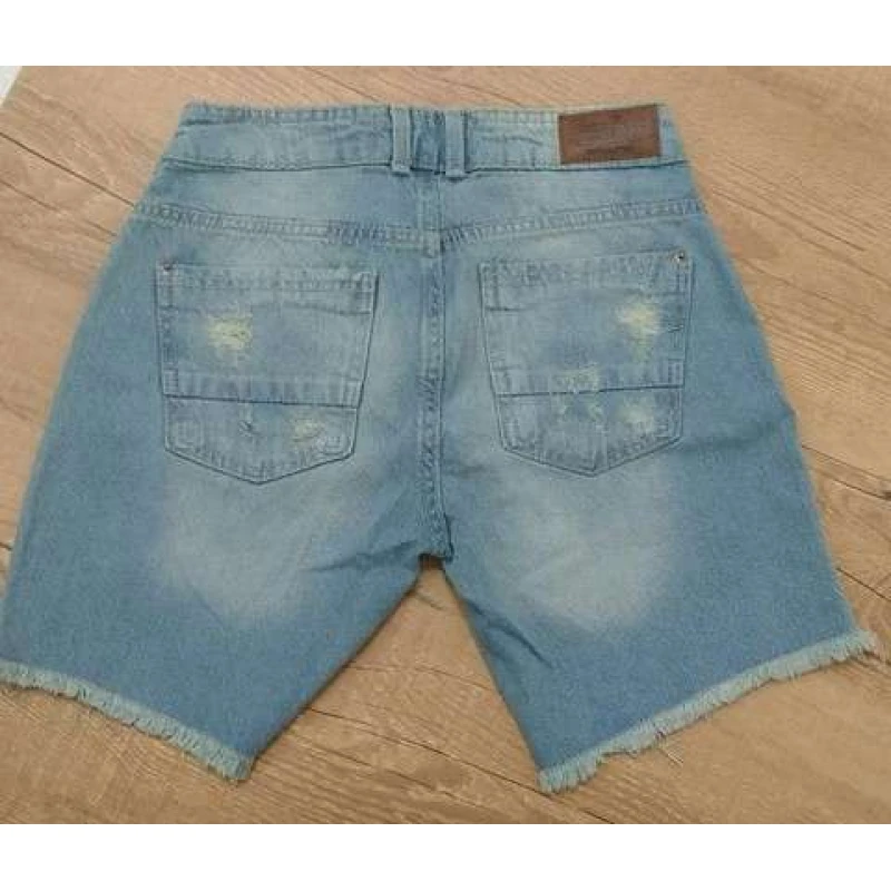 Shorts jeans Dzarm com barra desfiada e rasgados.